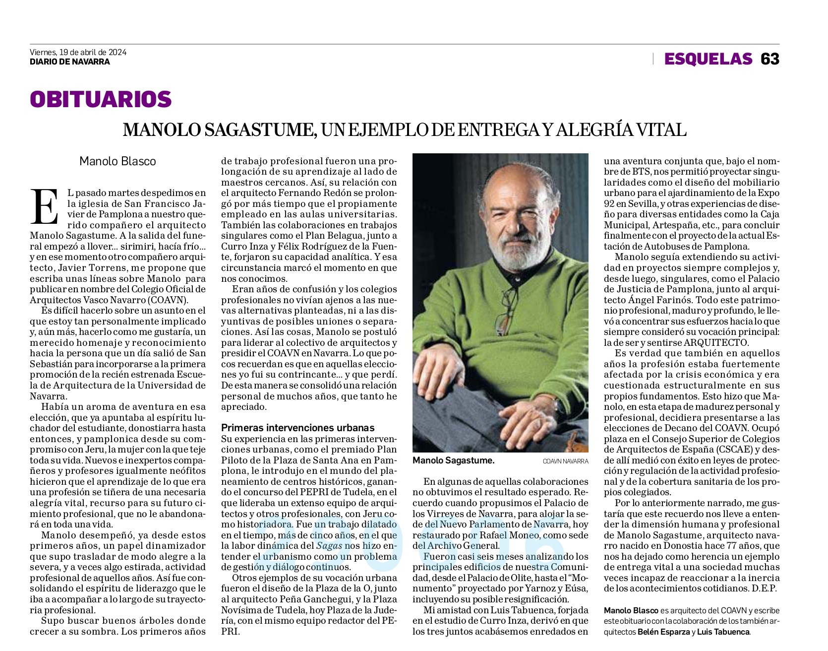 Diario-Diario de Navarra-16_04_2024-52 Diario-Diario de Navarra-19_04_2024-63 NOT16424NOTICIA DIARIO DE NAVARRA / Manolo Sagastume, un ejemplo de...