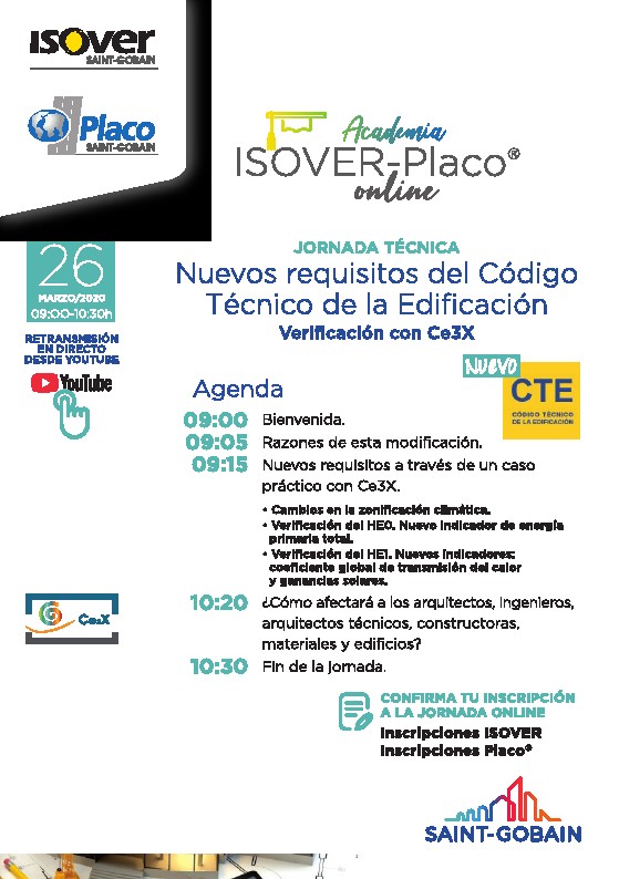 26/03. JORNADA TÉCNICA ON LINE ISOVER / Nuevos requisitos del CTE. Verificación con Ce3X