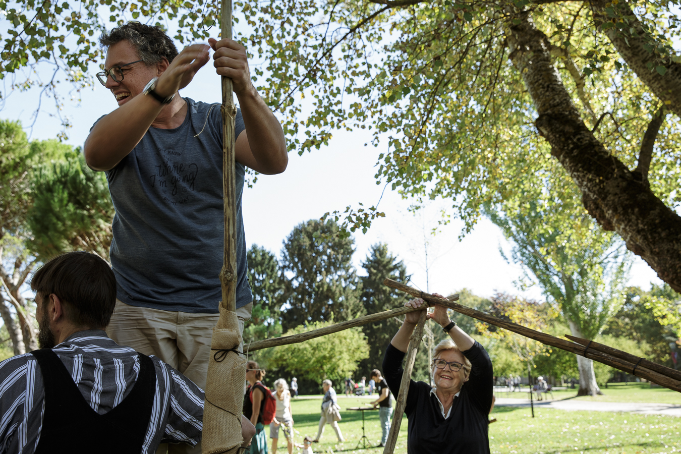 Utilizando los restos de jardinería de la ciudad y sirviéndonos del ingenio y las técnicas de ensamblaje haremos nuestra arquitectura efímera y la activaremos en clave musical con la colaboración interdisciplinar de Maushaus, Sistema Lupo y Asociación E7.2