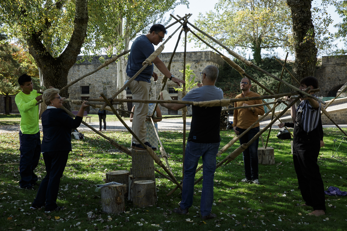 En el exterior de la Ciudadela si el tiempo lo permite llevaremos a cabo una jornada de juego participativo con talleres para la infancia y familias interesadas relacionados con la arquitectura efímera. Una sesión lúdica en la que entre todas las personas participantes se realizará una construcción.