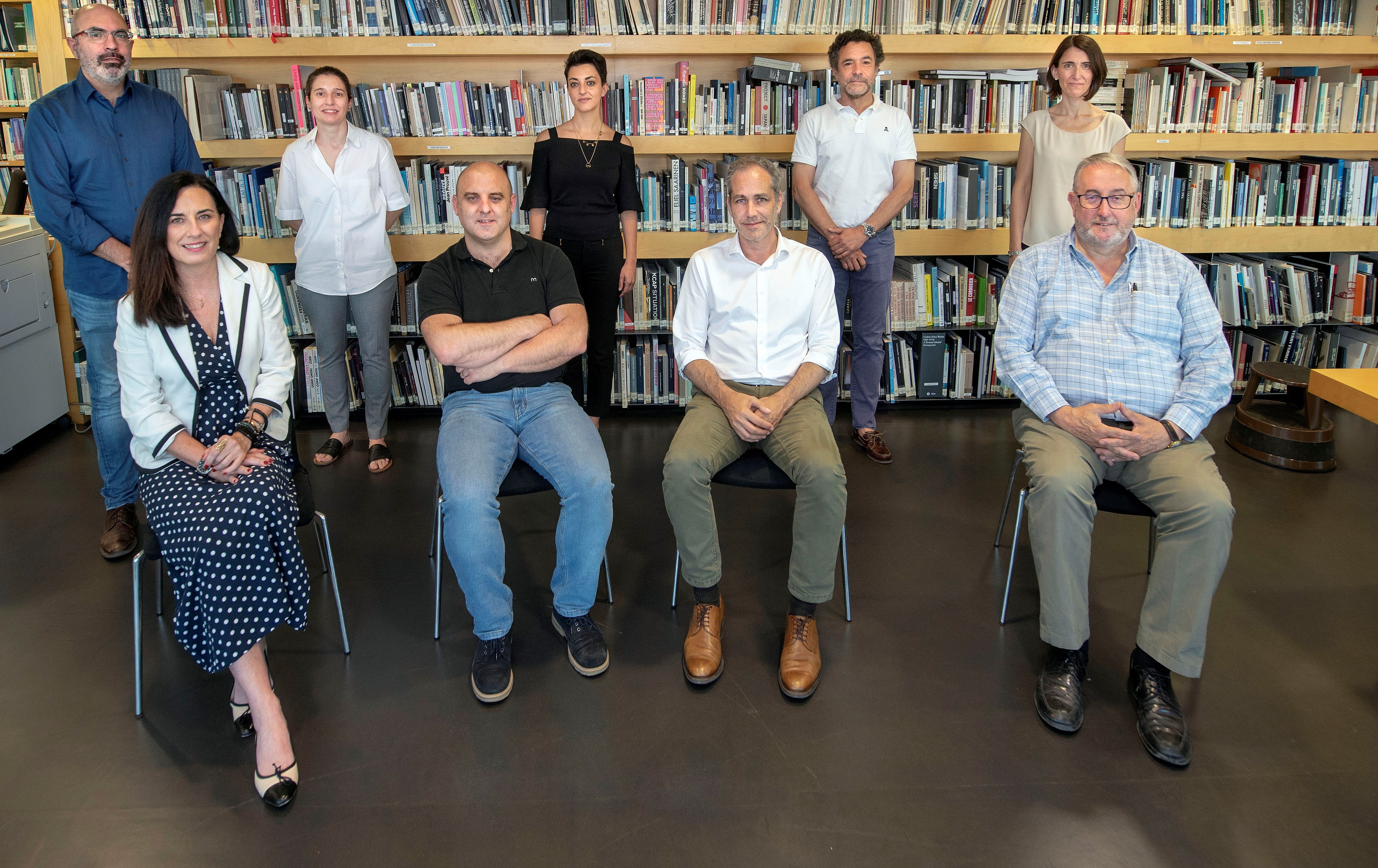De izda a dcha, sentados: Marian Díaz Gallardo (Vocal Junta Gobierno), Roberto Erviti Machain (Secretario), Josecho Vélaz Ballesteros (Presidente), Félix J. Fernández Valle (Tesorero). De pie: Vocales Javier Barcos Berruezo, María Azkarate Lete, Marina Rodríguez Artieta, Óscar Pérez Silanes y Iosune Baquedano Aldunate.