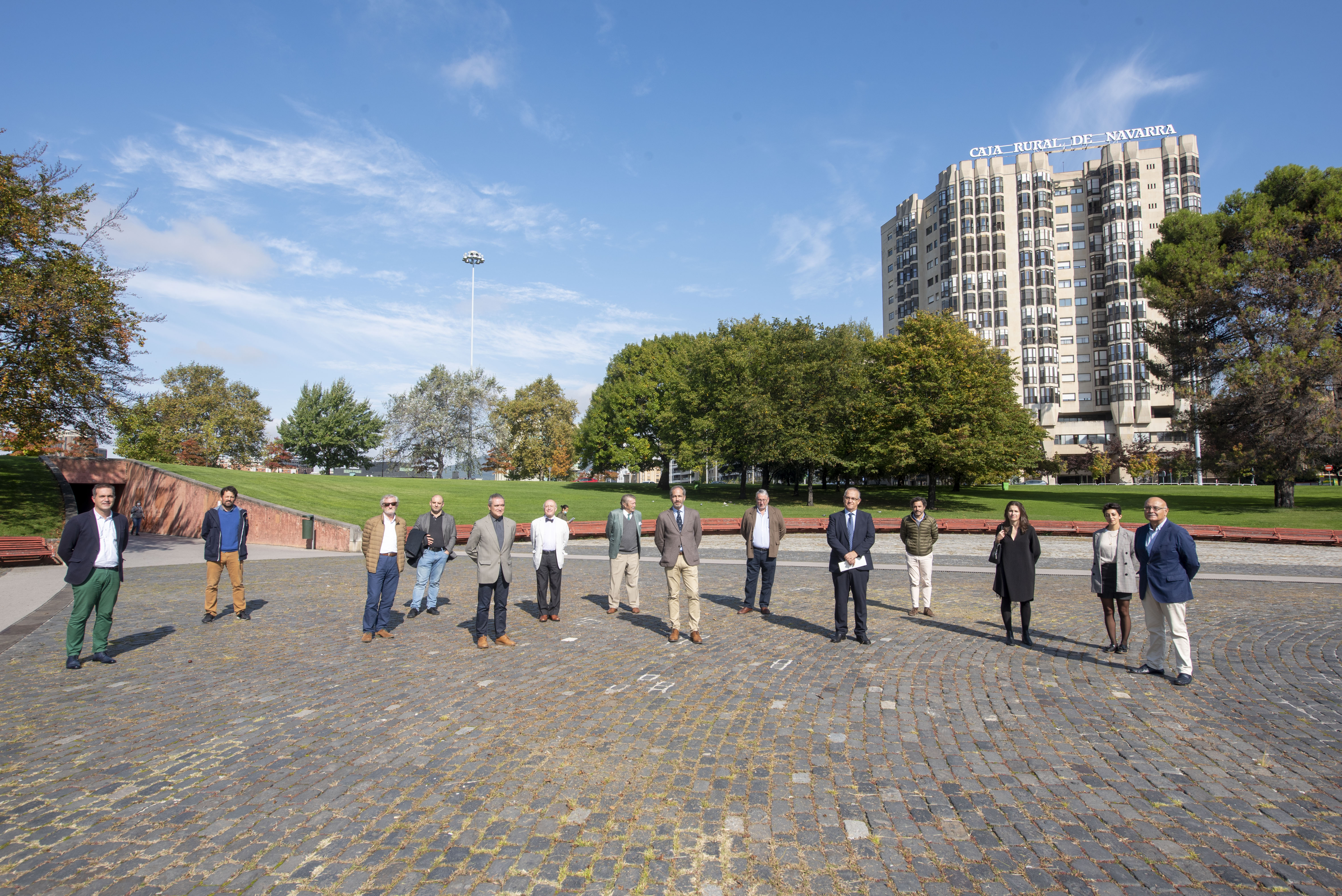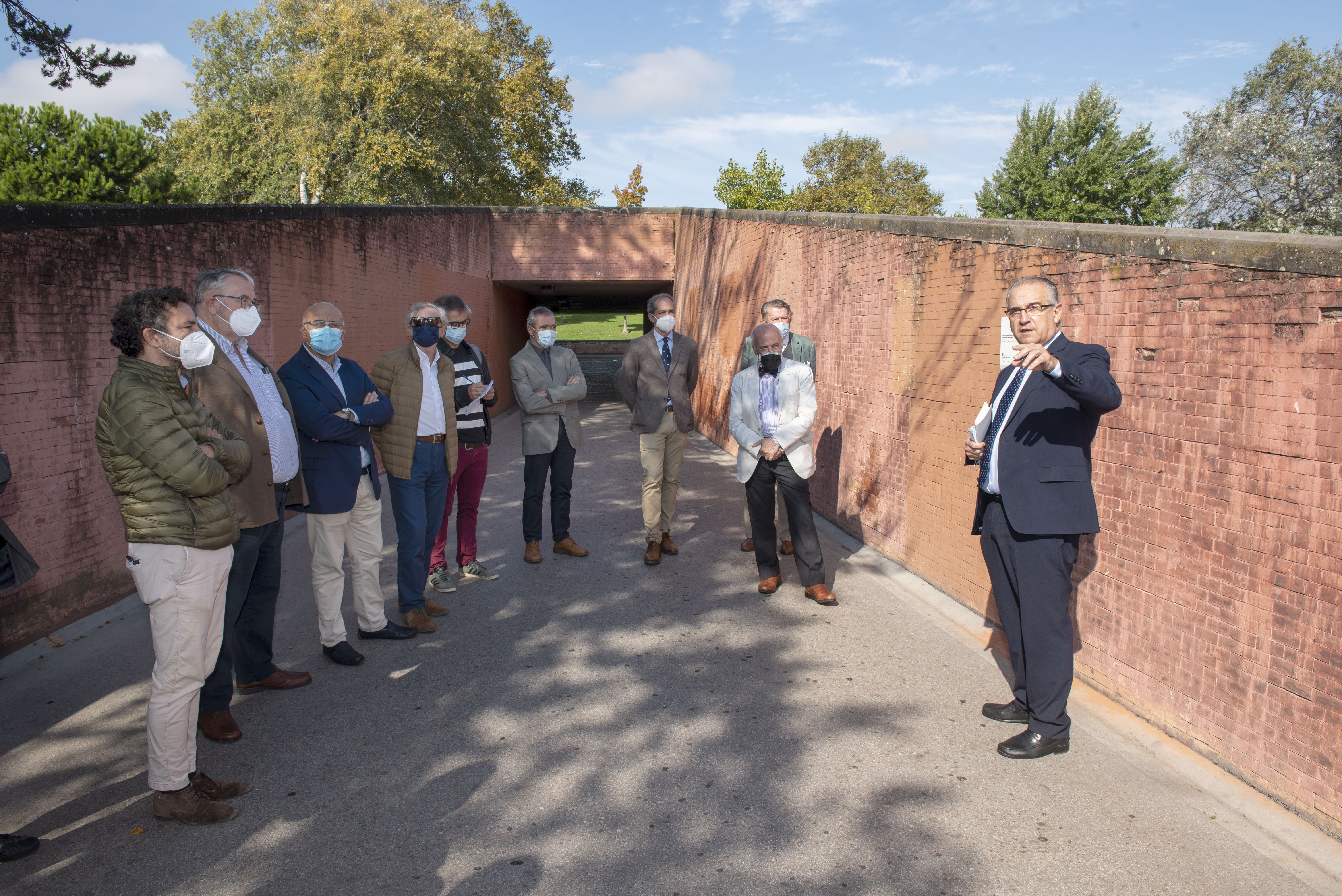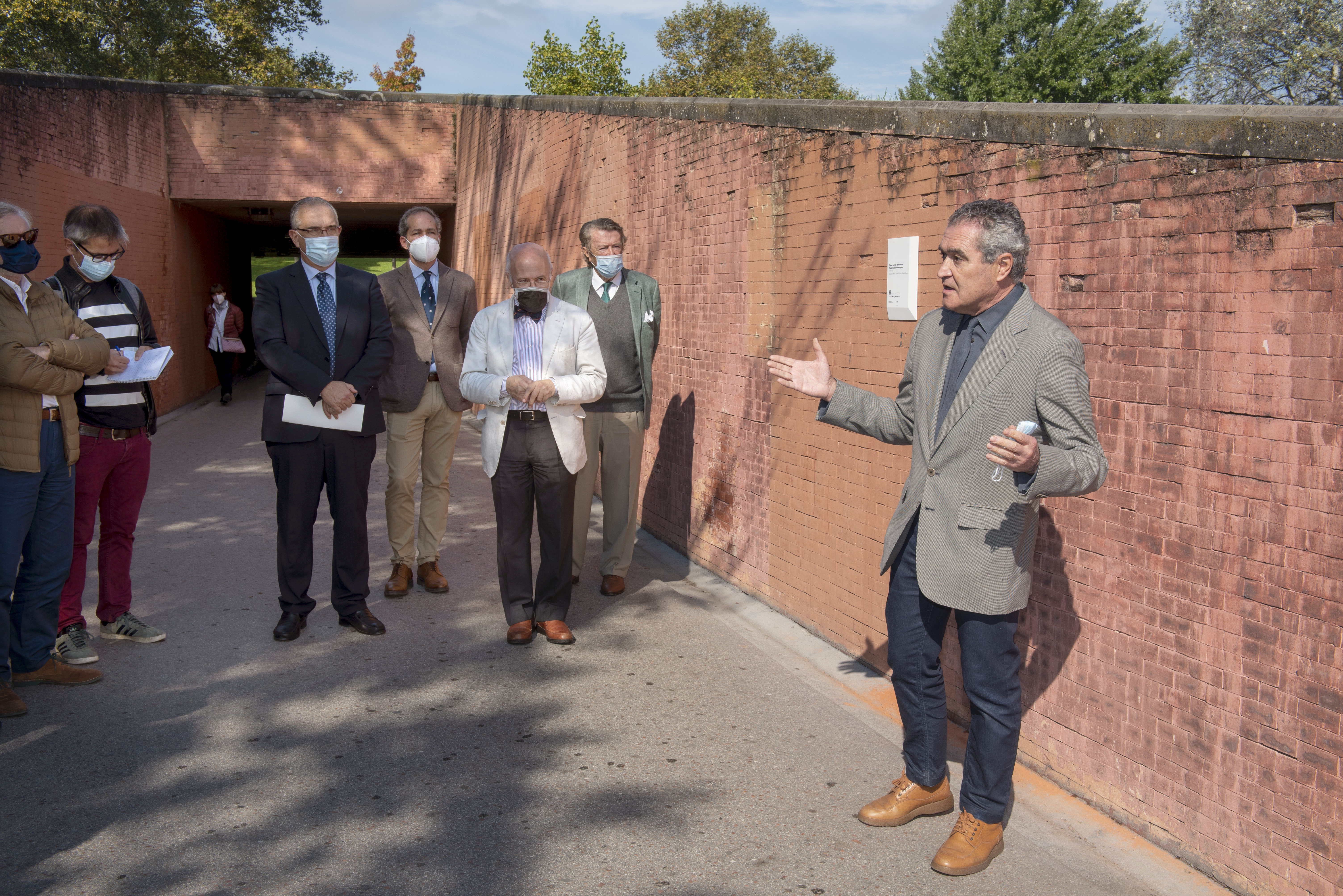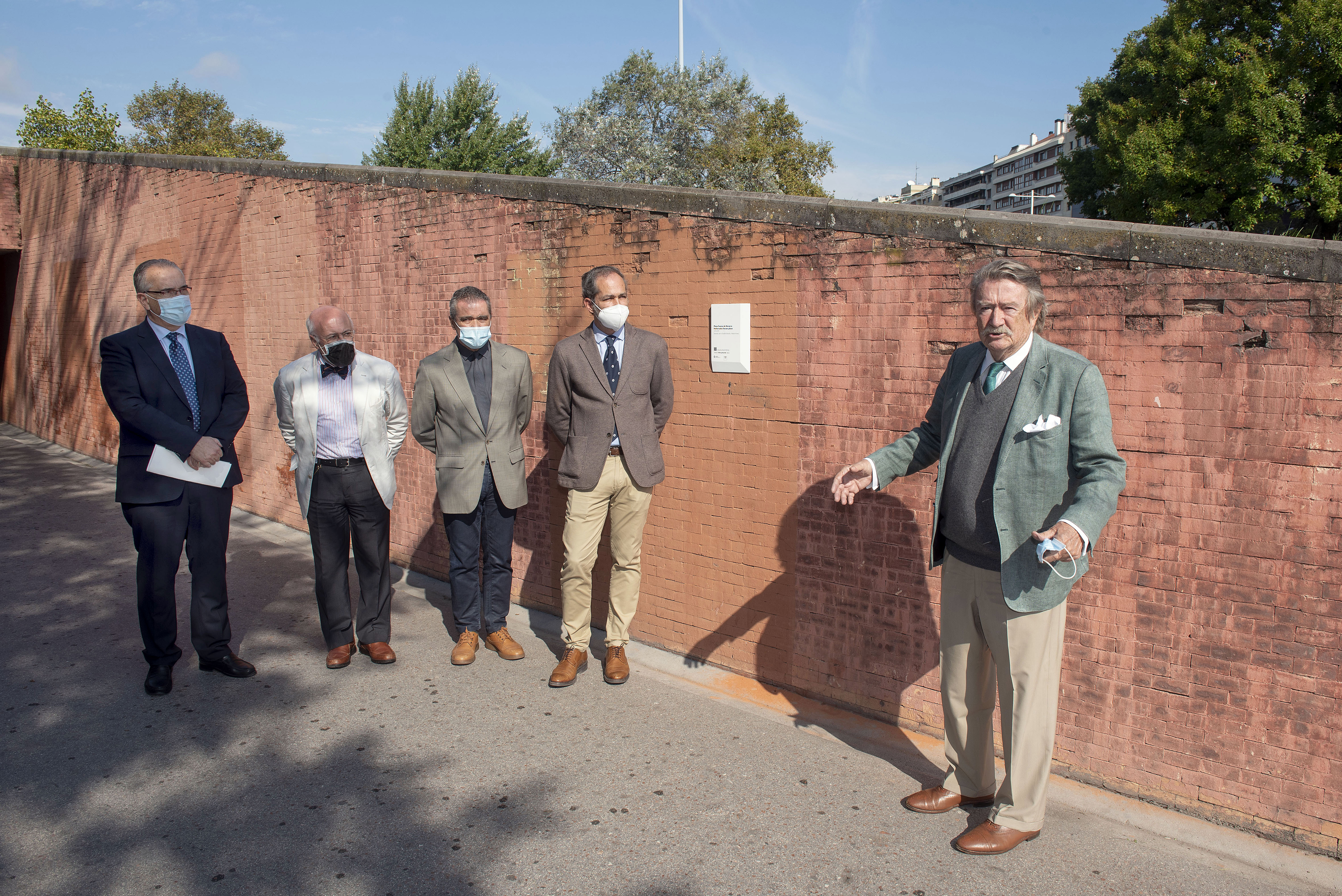 COAVN 389537Una mañana soleada que reunió a una veintena de personas, la inmensa mayoría arquitectos, en torno a ese punto de la plaza, para rendir homenaje a una obra arquitectónica de la ciudad construida en 1975, y por lo tanto, perteneciente al Movimiento Moderno, la única plaza entre los 30 edificios navarros que incluye el DoCoMoMo Ibérico.