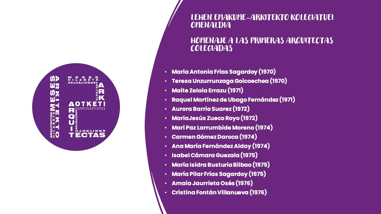 En esta ocasión las protagonistas eran 12 mujeres, todas ellas arquitectas, que compartían una característica común: la de haber abierto brecha al convertirse en unas de las primeras arquitectas tituladas y colegiadas en el COAVN. Doce mujeres que se colegiaron en la década de los años 70 y que en algunos casos todavía permanecen en activo.