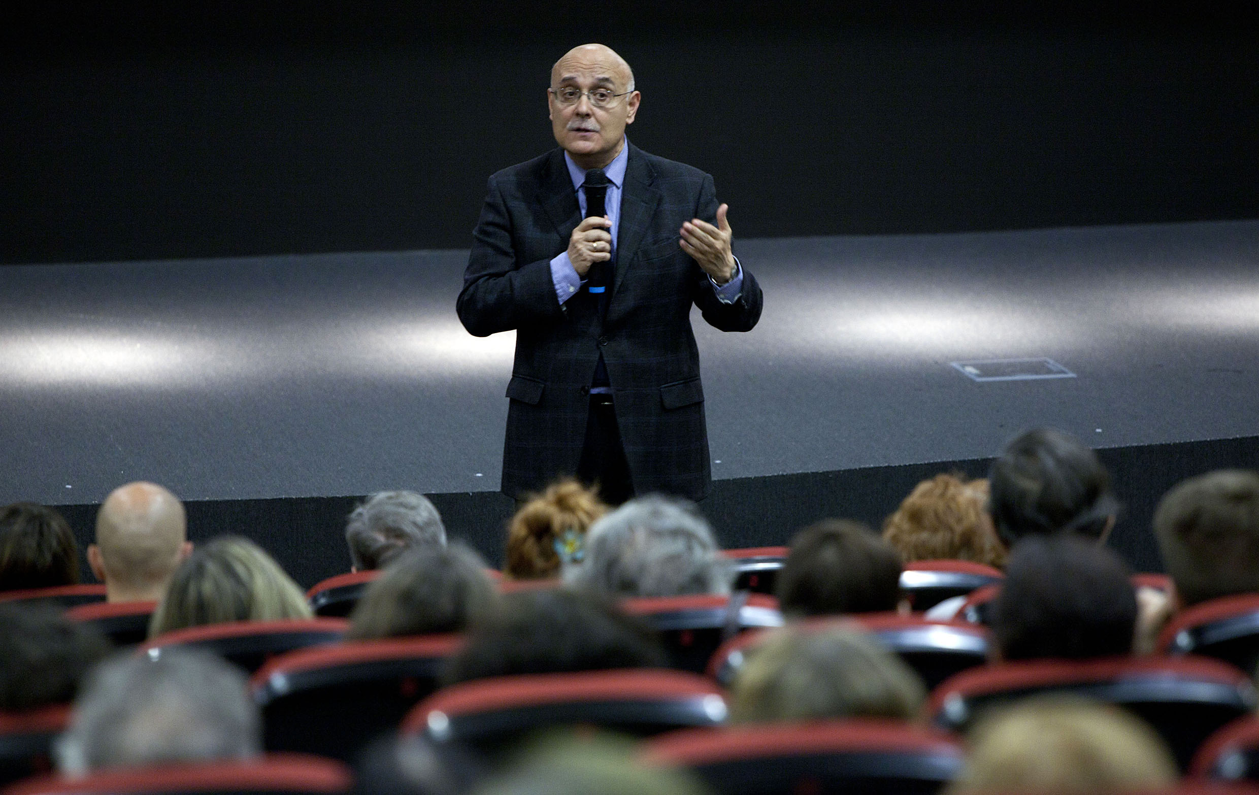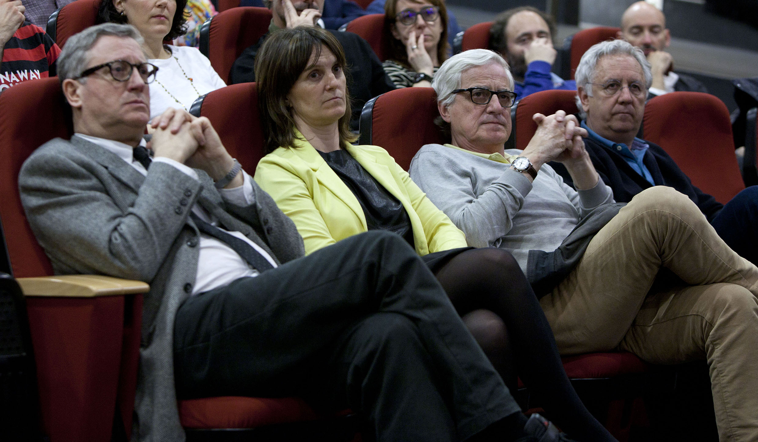 En compañía de la Decana del COAVN, Matxalen Acasuso, el miércoles 11 de mayo, volvimos a llenar la sala de la Filmoteca de Navarra en la segunda entrega de nuestro 7 º ciclo ‘Arquitectura de Cine’, para admirar ‘Haus Tugendhat’ y conocer a quienes tuvieron la fortuna de «habitar una obra de arte» situada en un recóndito lugar de la República Checa. En la imagen, de izda. a dcha. Javier Torrens, Vocal de Cultura del COAVN en Navarra; Matxalen Acasuso; Luis Tena, Vocal del COAVN en Navarra; y el también colegiado Ramón Garitano, que presentó el documental de la sesión que inauguró este año el ciclo.