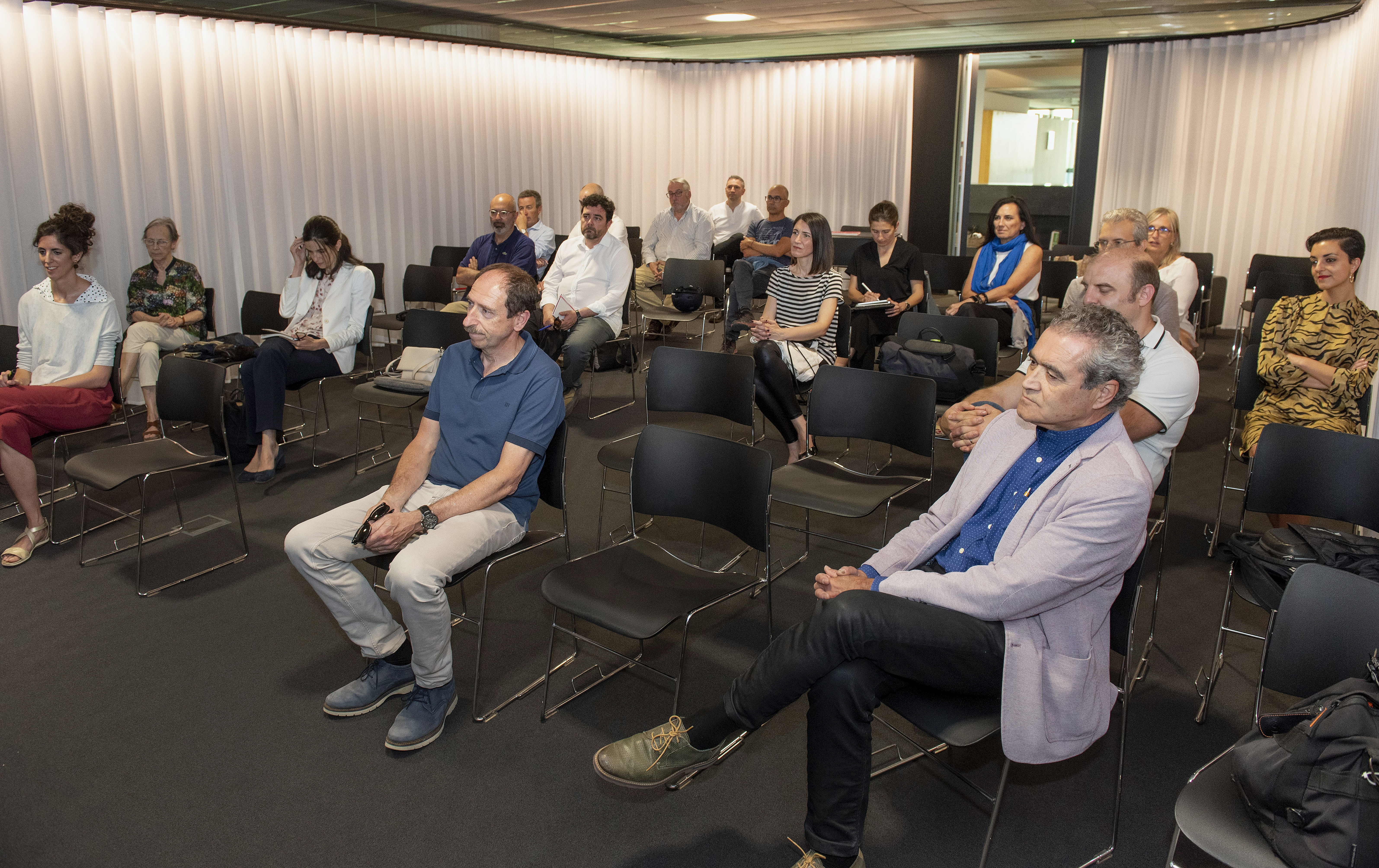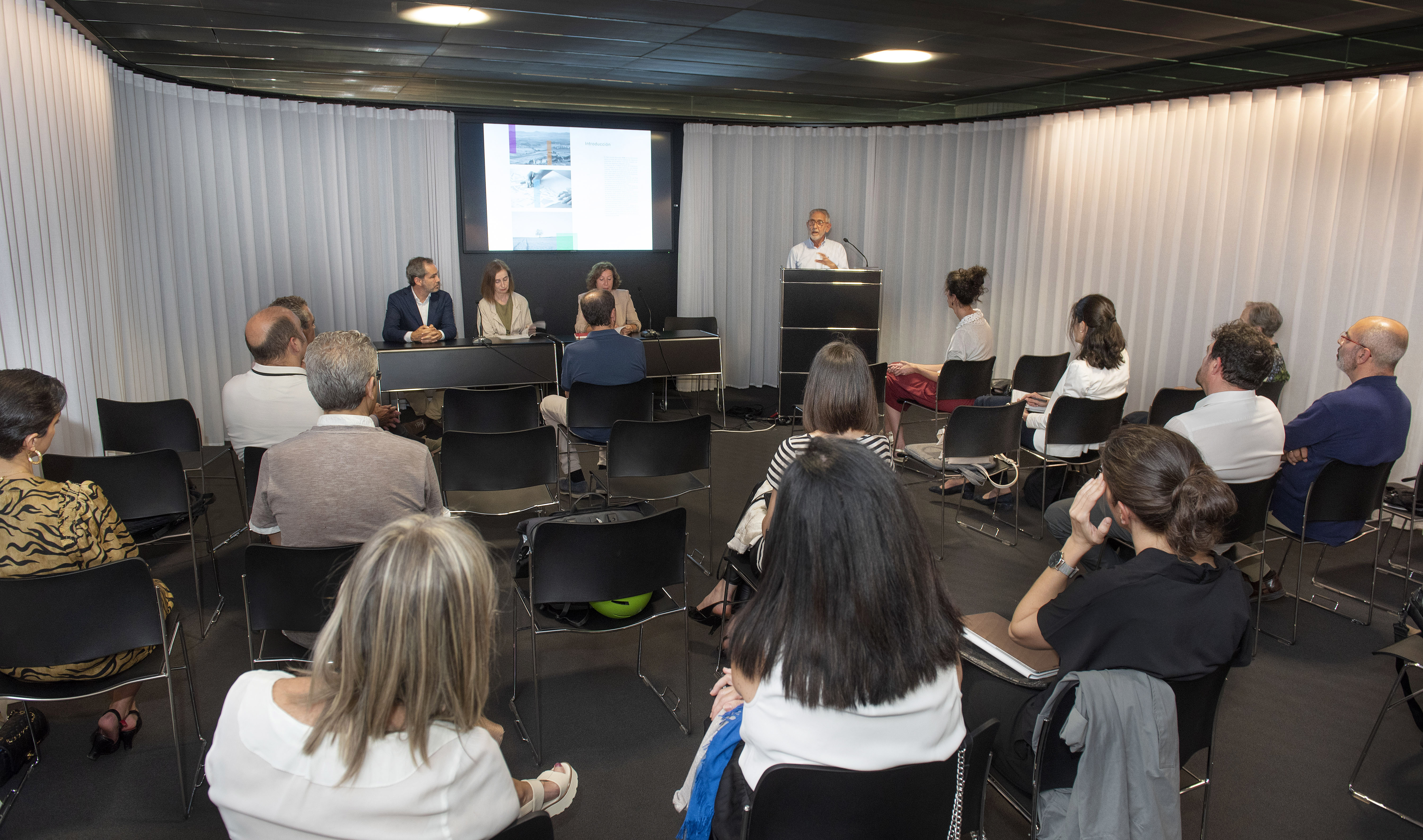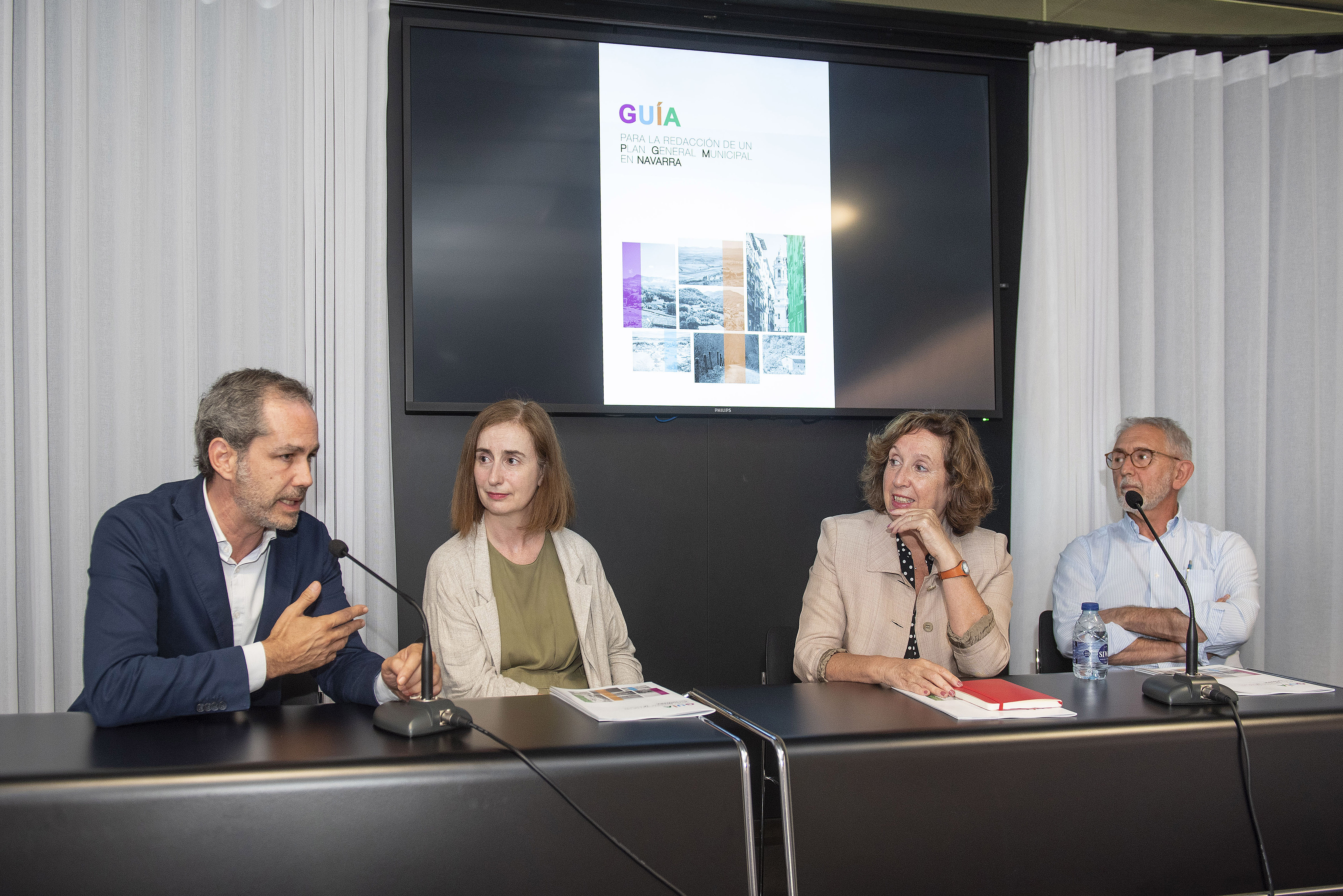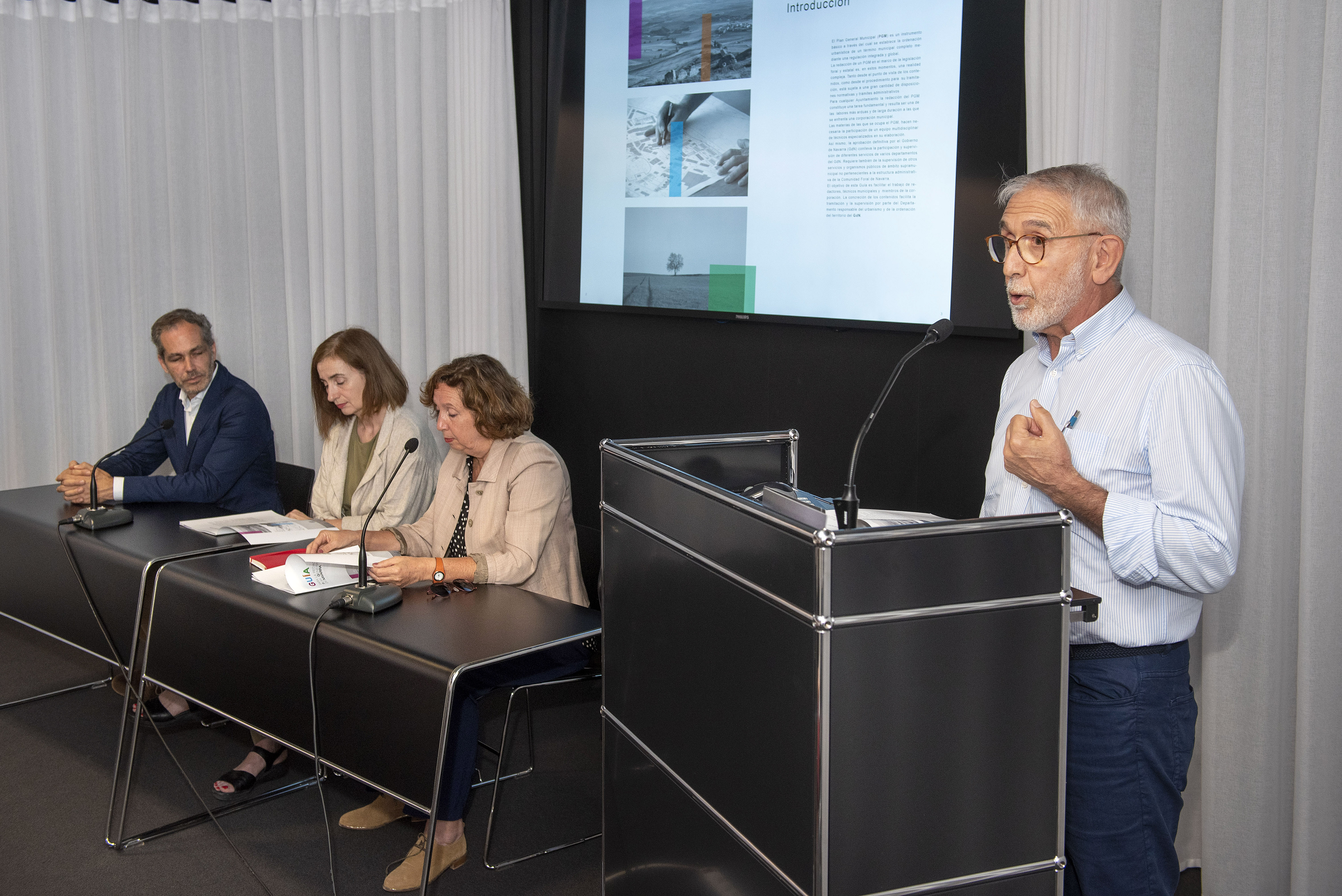 En el acto estuvieron presentes Izaskun Abril, Directora de Ordenación del Territorio del Departamento del Territorio, Vivienda, Paisaje y Proyectos Estratégicos del Gobierno de Navarra; María Urmeneta, presidenta de la AVNAU (Asociación Vasco Navarra de Arquitectos Urbanistas); Jose Ignacio Arribas, arquitecto urbanista y autor de la Guía; y Josecho Vélaz, presidente del COAVN en Navarra. No faltaron entre el público el Decano del COAVN, Patxi Chocarro; Fermín Cabasés, técnico de la FNMC, que acudió en representación de esta entidad; los miembros de la actual directiva del COAVN en Navarra, así como diferentes arquitectos urbanistas procedentes de la ETSA de la Universidad de Navarra y Mancomunidad de la Comarca de Pamplona.