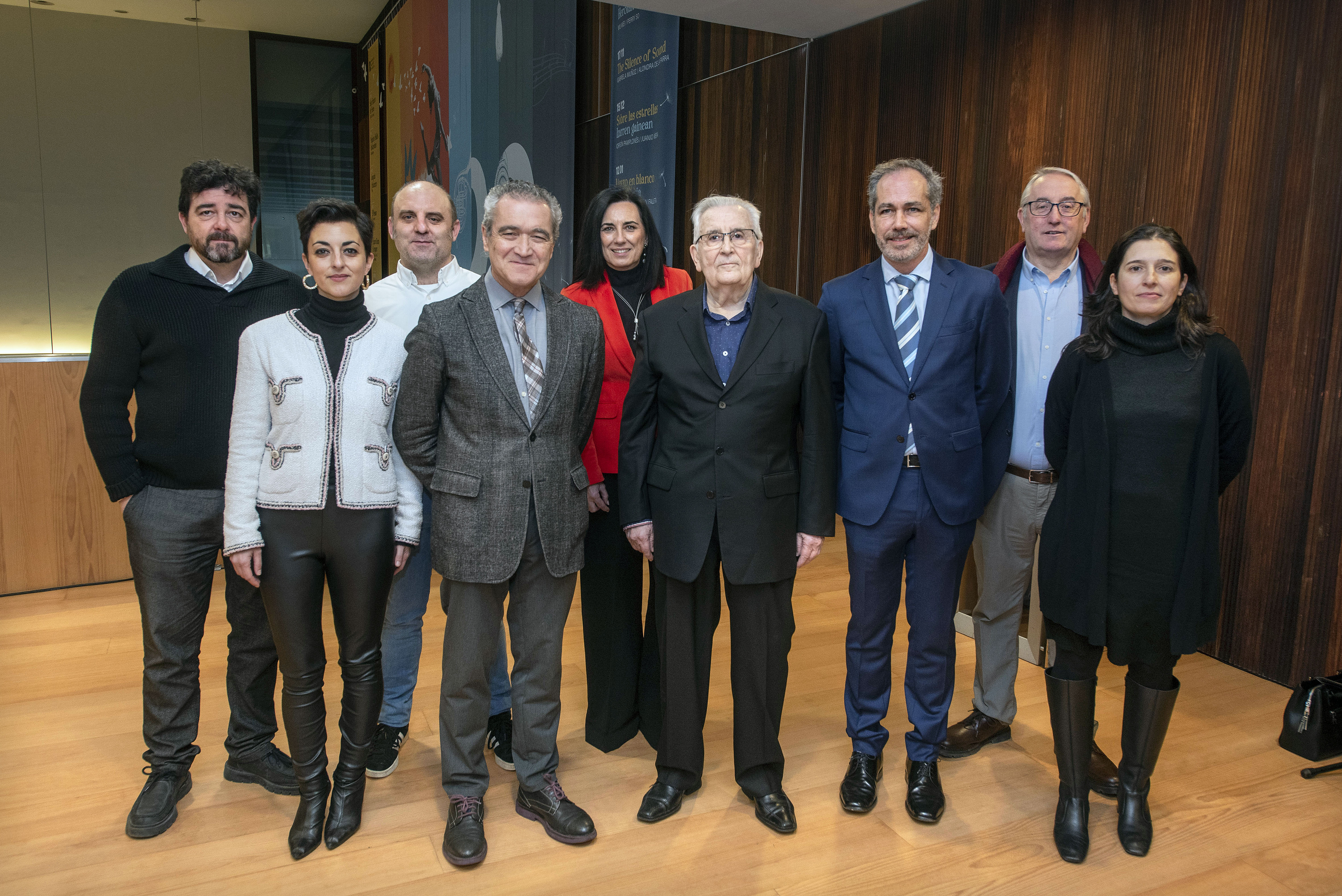 Alcalde citó muchos nombres, los de aquellas personas que le habían iniciado en la profesión y también los de aquellos que se habían iniciado con él en la arquitectura en ese primer estudio que abrió en el centro de Pamplona. Patxi Alcalde hizo así un recorrido por lo que había sido sus 60 años de trabajo profesional: edificaciones, proyectos, cálculos de estructuras, patentes, su labor en el colegio profesional, sus viajes, su hijo arquitecto… ‘Todavía no he hecho más que trabajar, trabajar y trabajar… pero eso me ha hecho feliz. Es una profesión maravillosa, que engancha, que te da vida…’