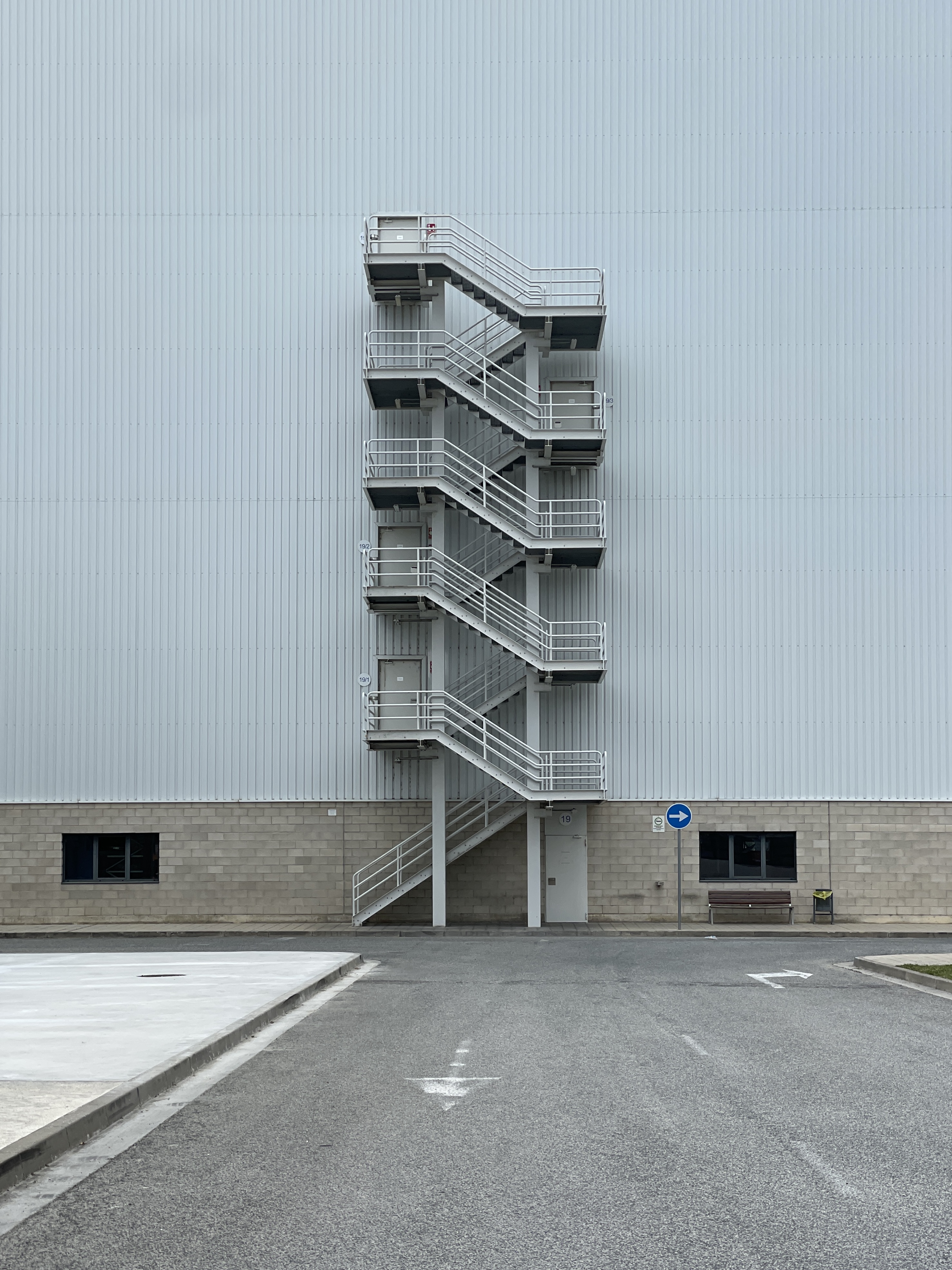 - Valoración de jurado: La relación figura-fondo o figuración-abstracción es la estrategia que pone en valor una fotografía de unas escaleras de emergencia en la fachada de un gran edificio industrial.