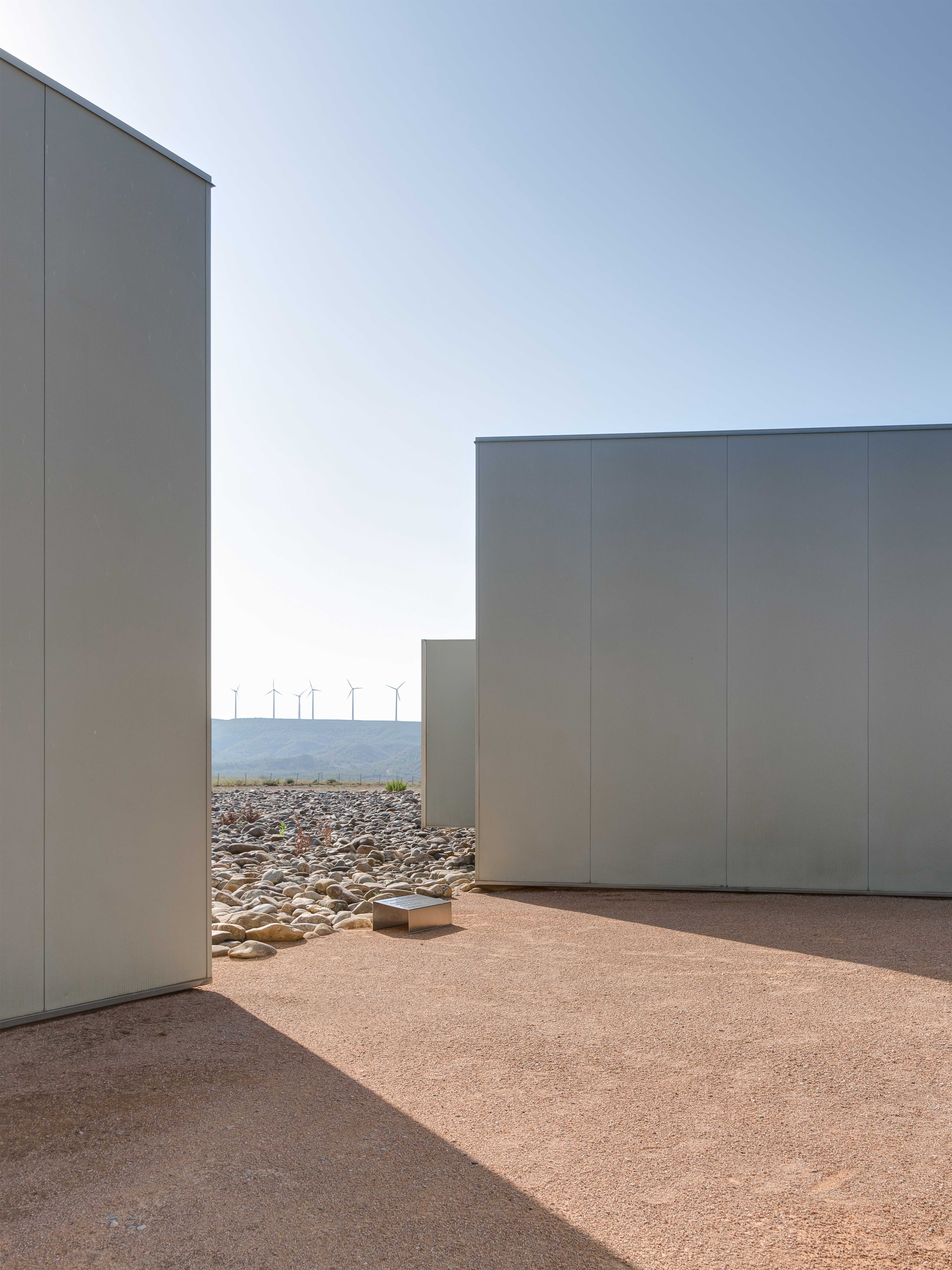 - Valoración de jurado: Se trata de una canónica fotografía de arquitectura perfectamente compuesta en términos formales y que estable un diálogo acertado entre la abstracción de los volúmenes arquitectónicos y la dureza material del paisaje.
