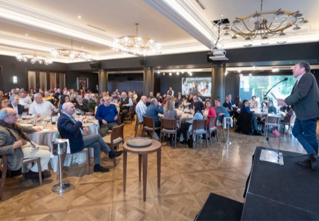 Era un momento de fiesta… y el Presidente de la delegación Navarra destacó la importancia de fortalecer los lazos dentro del colectivo: «Eventos como este son excepcionales en nuestro día a día y debemos fomentar más espacios de diálogo y colaboración entre colegas».